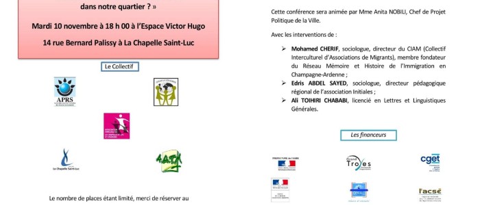 Dans le cadre du projet « Mémoires, Mixité et Urbanité », la ville de la Chapelle Saint-Luc organise une rencontre intitulée « Urbanité : comment vivre ensemble dans notre quartier ? » qui se